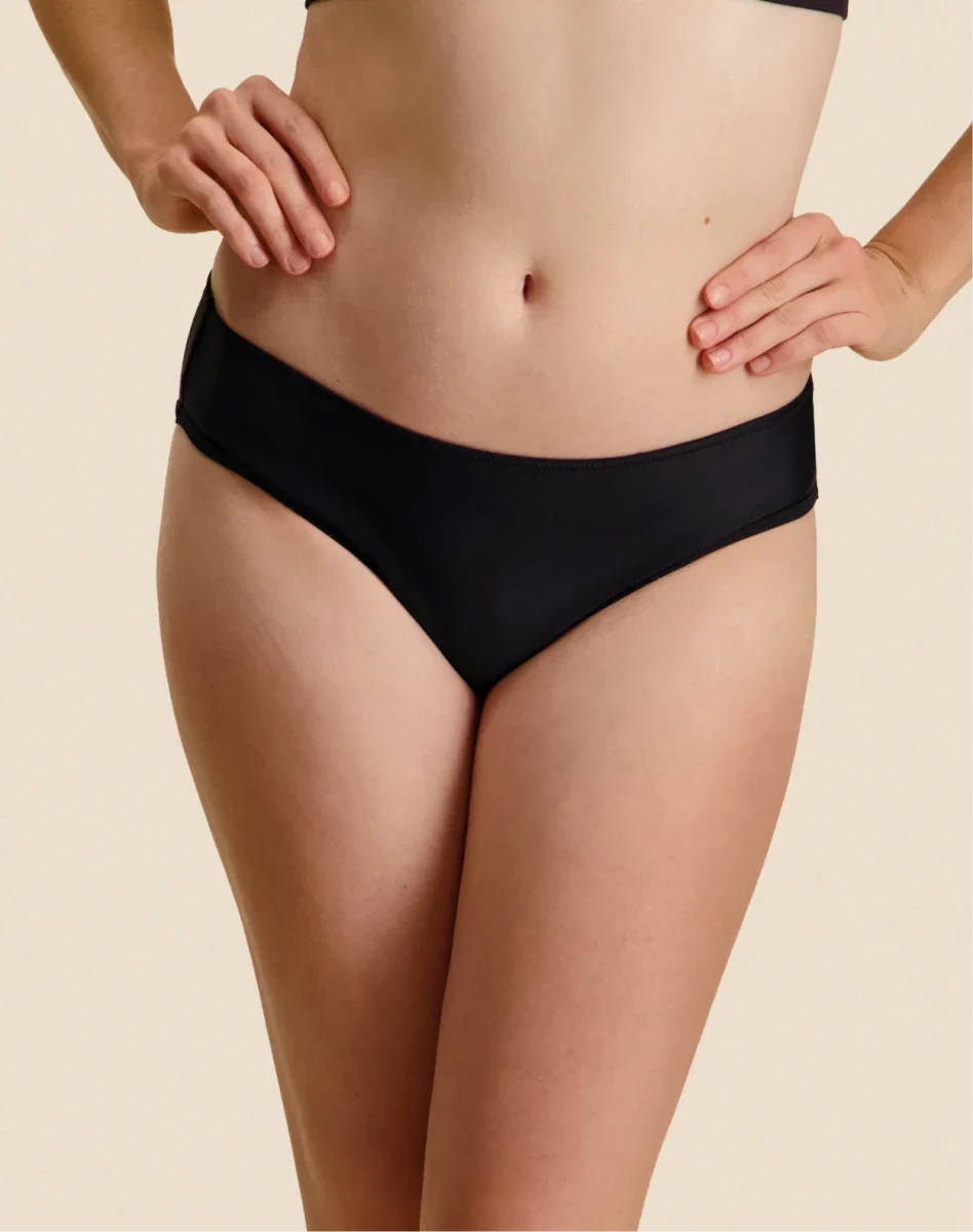 Celle qui mise sur la douceur et la polyvalence. Ce bas de maillot noir est l'allié idéal pour celles qui recherchent un look à la fois discret et moderne. Grâce à son système de lanières interchangeables, il s'adapte à toutes les morphologies et à toutes les envies. On peut le porter en culotte classique pour une couvrance rassurante ou en bikini échancré pour un style plus dynamique.