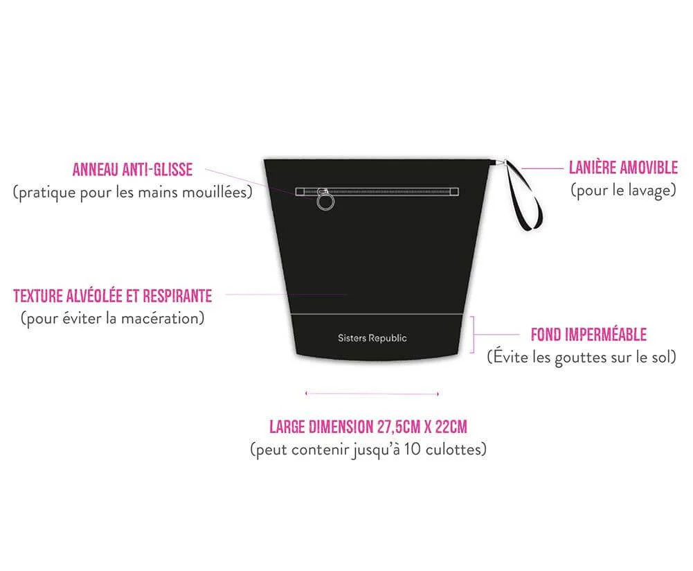 Ătanche, Ă©lĂ©gante et multifonctions, cette pochette sert aussi bien de rangement que de filet de lavage pour tes culottes !